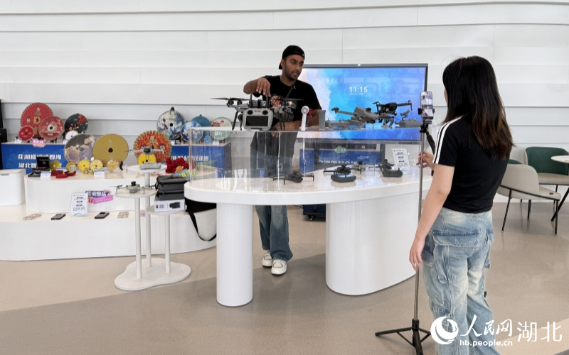 机场的“快”还带动区域产业加速升级。下午3点,位于鄂州市临空经济区的中国(鄂州)跨境电商产业园直播中心内,来自巴基斯坦的洋主播正在直播间向北美消费者推荐无人机;而在二楼的展销区,东南亚爆款女装,欧美畅销的电子产品、玩具手办等琳琅满目。