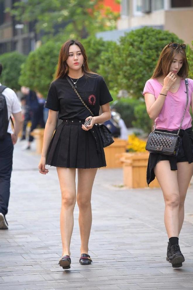 这位小姐姐穿着的是一件纯黑色的百褶裙,款式简约大气,却是最百搭,也是风格最多变的款式,黑色简约大气,是很不容易显旧的颜色,搭配各种服饰都不在话下,可盐可甜,更是许多小姐姐心爱的颜色,你可以说它甜美,也能说它酷炫,总得来说非常有个性。