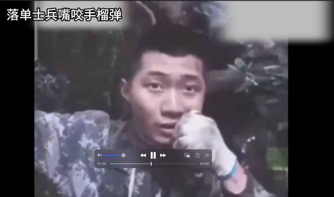 战士口中咬的手榴弹绝对是剩下最后的武器,这个手榴弹在“对越自卫反击”中很多人都见过,就是“光荣弹”。所以战士用到“光荣弹”就代表随时与敌人同归于尽,绝不投降!
